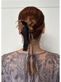 タイトにつるんとまとめてサイドから持ってきた束にラメをつけて華やかにしました!ぱっくりとした分け目がつかないように艶々に仕上げました。