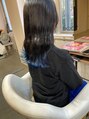 ベースはブルーブラック◎落とせる黒染め薬剤とブルーをミックスしてます◎毛先はライトブルーの塩基性カラー。縮毛履歴ありなので、ケアカラーでダメージレスに☆