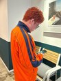 人生初めてのブリーチ!クセを活かした束感カットと一度のブリーチでオレンジと赤をミックスしてお洒落ヘアーに!