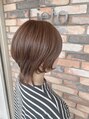 頭の丸みをキレイに見せるレイヤーを入れてきれいなシルエットと全体の軽さを出しました。襟足部分は外ハネでも内巻きでもどちらでもバランスよくまとまります。カラーは人気の高い透明感ベージュで染めさせてもらいました。