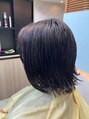 ボブスタイルにさせていただきました。今回は襟足スッキリにして扱いやすさと大人っぽさを♪ストレートアイロンを軽く当ててオイルで仕上げています☆