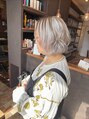 全体をホワイトシルバーに、トップにスモークベージュを入れたアンブレラカラーです♪デザインカラーでハイトーンにメリハリを。