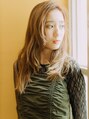 ハイトーンのロングレイヤースタイルになります!サイドにたっぷりレイヤーを入れて今の流行りのスタイルにしてます!カラーはブリーチしてベージュ系になっています!前髪を分けることで大人っぽさを出しています!