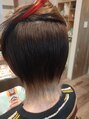 ブリーチの矯正は、基本お断りしております。ショートスタイルでも丸さのある自然なストレートになりました。膨らみやすい髪質ですがかなりスッキリしました。ばーっと乾かしただけのスタイルです。