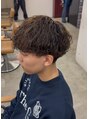 波巻きパーマ ブラウンカラー 刈り上げマッシュ