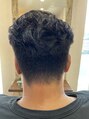 ツーブロックのパーマスタイルです。髪をウエットの状態でセット剤を使い自然乾燥で仕上げたお手入れのやりやすいスタイルです。トップを中心に巻いたポイントパーマです。