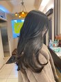 黒髪の持つ上品さに、ほんのりグレージュの透明感をプラス。顔まわりのレイヤーで軽やかさを演出し、抜け感のある洗練スタイルに。ミネラル成分が微粒子レベルで浸透する縮毛矯正で、ダメージを補修しながら、しっとりまとまりのある艶髪へ。