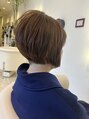 白髪ぼかしカラーで白髪を味方にしたからー。色味はゴールドブラウン。後頭部のウエイトを高めに設定したボブ、耳後ろの、もたつきをなくしたコンパクトなシルエットが美しいスタイル