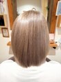 メテオカラーで透明感あるシルバーグレージュカラーに。ダメージも大幅に低減しながらツヤツヤでサラサラな美髪ボブに仕上がります。髪質にお悩みの方、年齢とともに髪質の変化が気になってきた方にぜひオススメです。