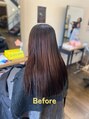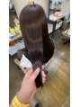 ロングのパサつき・広がりが気になる方に!ジェルカラーでしっとり柔らか、軽やかにまとまるツヤ髪へチェンジ♪お色は落ち着きも出しつつ上品なピンクブラウンに。