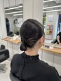 ボブで短い髪のお客様小さめなシニヨンに少しアレンジを加えたカチモリヘア