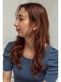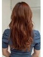 全体にレイヤーを入れたロングスタイル。前髪は少し下ろして頬骨くらいでカット。カラーは暖色系のレッドブラウン系でやわらかい印象に!もともと明るめのベースの方なのでカラーも発色しやすくブリーチなしでもでからカラーです。