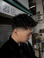 緩めにパーマをかけることでナチュラルな印象になります。セットは、ツヤのある整髪料で揉み込むだけです。刈り上げのmm数は調整可能です。