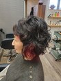 アシメカットにさらにパーマそしてさらにパープルカラーを入れました!とっても個性的で誰ともかぶらないスタイルです!くるんくるんのパーマがかわいい!