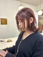 ブリーチなしピンクブラウンカラー/顔まわりレイヤー/くびれボブ