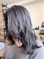 グレーヘアにハイライトを入れ、透明感のある外人風カラーに。50代女性マイナス10歳ヘア。