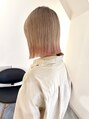 ミルクティーベージュ/ミルクティーカラー/ベージュ/ブリーチカラー/ボブ/切りっぱなしボブ/裾カラー/ピンクカラー/外ハネボブ