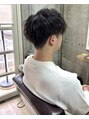 ツイストスパイラルパーマ×アップバングスタイル。縦落ちのクルクルしすぎないパーマ、漢らしい印象になります!スタイリングも時短で出来ます!