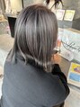 アンブレラカラーカラー。ハイライトに見えますが、トップのみ2ブリーチで色を抜いてシルバーを重ねたデザイン。ワンレンベース,直毛さんに似合うデザインです。ブリーチの範囲が少ないので、なるべくダメージを少なくしたい方にもオススメです♪
