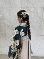 着物の襟に擦れにくくする為に、少し高めにしたあみ下ろしスタイルです。髪の量が多いので、ボリュームを抑えた感じに仕上げました。