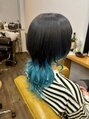 インナーカラーのターコイズブルー!ベースをしっかりブリーチで明るくしてあげることによって、淡めのブルーも可愛く入ります!表面も元々ブリーチ毛でしたが、オフブラックを使ってあげることによって、またカラーチェンジしやすいような黒にしてます!