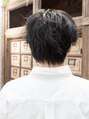 カットはツーブロックをいれて、襟足は刈り上げずに耳半分隠れるくらいのマッシュベースでカットしました。パーマはくせ毛っぽくするためにツイストで大きめのロッドでサーフカールのように巻きました。膨らむところは外ハネでタイトに。【メンズ/眉毛/韓国】