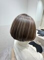 ケアブリーチでハイライト後アッシュブラウンベースにグレージュのハイライトを入れてます