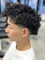 似合わせ骨格補正カット。波巻きスパイラルで無造作に。サイドはツーブロックで男らしさを。耳周りはスッキリさせて爽やかに。スタイリング剤はジェルを使用し、クールな印象に。【ブックマークをしてご提示ください】