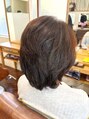 少し高めからレイヤーを入れることで軽さが出ます。重めスタイルより軽めがお好きな方に。カラーはヘアマニキュアのミディアムブラウンです。ヘアマニキュアはコーティングして色をのせるため、はりこし感がアップします。頭皮が敏感な方におすすめです。