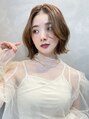 フェイスレイヤーに外ハネボブと透明感のあるオリーブカラー。オシャレかわいいスタイル