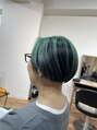 グリーンのアンブレラカラーのミニボブです個性的なデザインがお好きな方におすすめです。気に入ったスタイルはブックマークして頂けると便利です髪質改善/白髪ぼかし/メンズ/東神奈川/反町