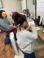 - 髪は毛先5センチカット。セットはカチモリヘアースタイル。