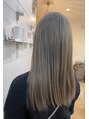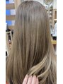 全体ケアブリーチ後ほんのり淡いベージュをオンカラー。クリアのカラー材を多めに混ぜ込んで透明感と淡さを出しています。保護剤たっぷりのケアブリーチを使うことで痛みも最小限に抑えられます。お仕上げは色落ちしないように温度低めのアイロン仕上げ♪