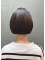 襟足ギリギリの長さでのボブに加え手ぐしでまとまる簡単スタイルです。頭皮につけないゼロタッチカラーを施し、色はナチュラルなオリーブ系で艶っぽくしました。