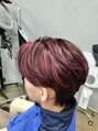 サイドとバックは刈り上げのフェードスタイルでスッキリと。カラーはブリーチでメッシュキャップスタイル。2回ブリーチで脱色して黄ばみをとっています。クールな印象のスタイルです。
