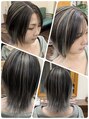 外ハネボブ ハイライトカラー 切りっぱなしボブ