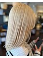 ホワイトブロンドカラーは、その美しさを引き立てるために、ブリーチが欠かせないデザインです。ブリーチカラーは、ベース作りがとても大切です。当店ではお客様の髪を守るために、ケアブリーチを使用。ダメージを最小限に抑えながらも鮮やかな色を実現。