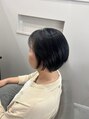 肩位まであった髪をショートボブスタイルにうねりが強かったので髪質改善をしました襟足はスッキリ短くして全体的に扱いやすいように毛量調整