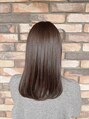 透明感のある色味の表現がしやすいアディクシーの薬剤と髪質に合わせて保湿、補修のできるトリートメントで限りなくダメージレスで幅広い色味の表現ができます。今回はベージュとさらっとした指通りで柔らかさと軽さが出せています。
