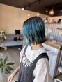 ホワイトブロンドに毛先の残留はブルーをのせてデザインにしました。