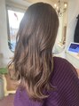 柔らかいミルクティーカラーと、くすみがかったアッシュブラウンの色味を合わせたカラー。ナチュラルなトーンやブリーチありの明るめトーンからでも、おしゃれな抜け感カラーに仕上がります。透明感があるカラーなので、肌色も明るく見せてくれます。