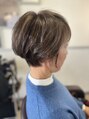 襟足がシャープでクールになりがちなショートに、曲線と重みを残すことで女性らしさを感じるスタイルに仕上げました。トップとフロントのみハイライトを入れたので、立体感がでて、明るさにより白髪のカバーがしやすくなりました。