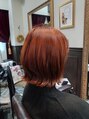 カットはせっかく伸びていってるので、伸ばすという事で、カラーは完全にお任せしていつもしない様な、ガラッと雰囲気変えたいと、私の思うお客様のイメージをガラリと変える雰囲気のお色でブレンド。褪色したオレンジとは違った作ったオレンジも良いです◎