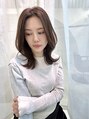 大人かわいいロングスタイル。似合わせ小顔カットが得意です。頭の形と顔型に合わせながら柔らかく髪を動かします。ドライヤーだけで形になるようにセニングシザーを極力使わずに髪を減らしつつ芯も残します。
