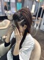 前髪ポンパのストレートスジ盛りハーフアップ 編み込みアレンジ別途500円~ ロング料金別途500円