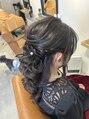結婚式のお呼ばれヘアアレンジ(´∀`)ハーフアップはとっても人気です♪ドレスに合わせてふわふわな感じに仕上げています。