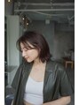- 前髪長め大人外ハネボブ切りっぱなしボブ大人ボブ透明感カラー