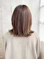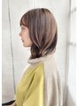 やや前下がりにカットした切りっぱなしスタイルあえてカットラインを重めに残す事で毛先に厚みがでてオシャレ度UP顔周りと表面にレイヤーカットを入れ春色カラーを添える。