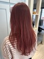 ブリーチ無しのレッドカラーです。顔周りには流行りのレイヤーをたっぷり入れた軽めのスタイルになります。スタイリングは毛先ワンカールでもしっかり巻いてもどちらでも可愛いですよ^^