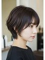 自然な丸みのあるシルエットが特徴的なショートボブスタイル。毛先に軽いパーマをかけることで、こなれ感のある動きを演出しています。シースルーバングで抜け感を出しつつ、サイドの長さを残すことで女性らしさも兼ね備えた万能ショート。